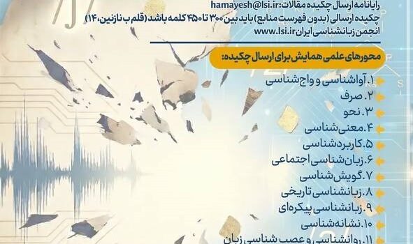برگزارکننده: انجمن زبانشناسی ایران با همکاری دانشگاه الزهرا(س)زمان برگزاری: ۲۳ و ۲۴ اردیبهشت ۱۴۰۵محل برگزاری: دانشگاه الزهرا(س)محورهای همایش:۱. آواشناسی و واجشناسی۲. صرف۳. نحو۴. معناشناسی۵. کاربردشناسی۶. زبانشناسی اجتماعی۷. گویششناسی۸. زبانشناسی تاریخی۹....